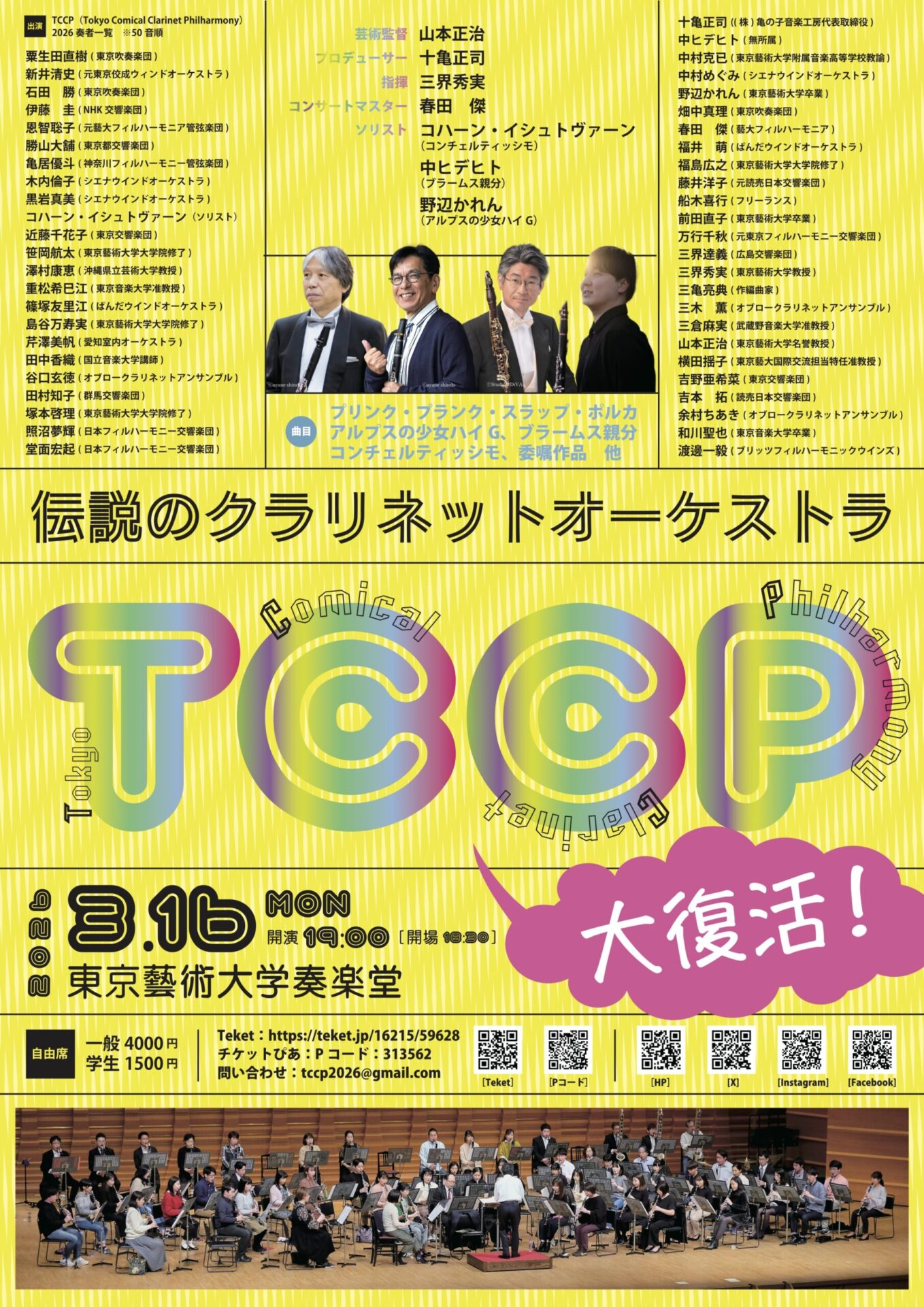 全席指定 一般 1,500 学生応援チケット 10,000 (一般チケットとの差額については広く学生支援のために使用させていただきます。) 台東区民割 引換券 1,200 |
